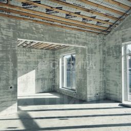 Конструктив: Стены из газобетона "Поревит", вальмовая крыша с гибкой черепицей.