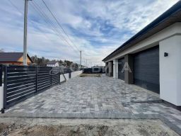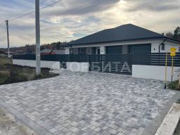 Участок: Благоустроенная территория с покрытием из брусчатки "Поревит", скважина, электричество 380 В.