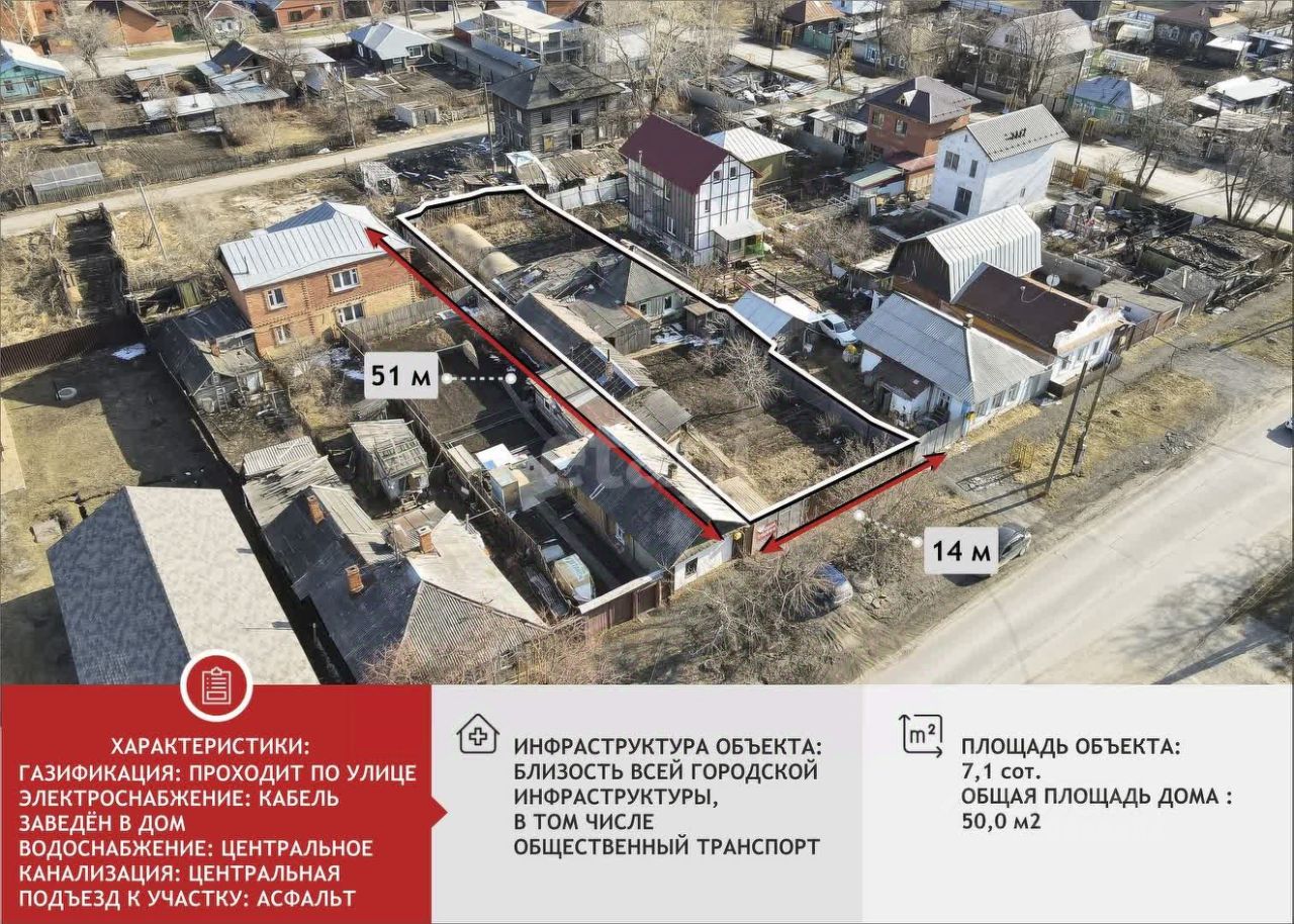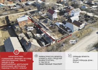 На участке стоит одноэтажный дом (50 м²) добротный, со всеми коммуникациями — газ, электричество, вода заведены. Но дом требует серьёзного ремонта и скорее подойдёт под снос. Это отличная возможность построить современный коттедж в черте города.