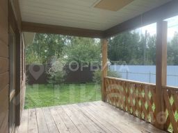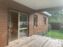 Дом выполнен из бруса окладника , на свайно-винтовом фундаменте , обшит сайдингом , утеплитель , каменная вата , 50 мм , с красивой , ажурной террасой .