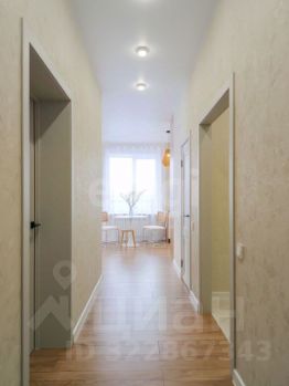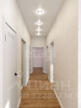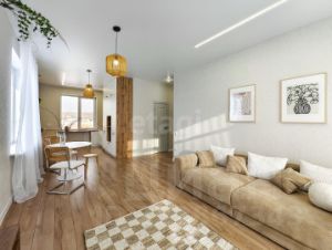 Полы: керамогранит в кухне-гостиной, прихожей и санузлах; в спальнях — ламинат.