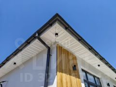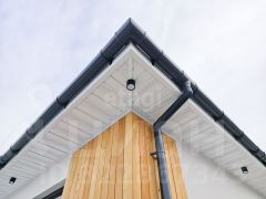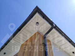 Крыша — профлист графитового цвета с утеплением 150 мм, оборудована водосточной системой и снегозадержателями.