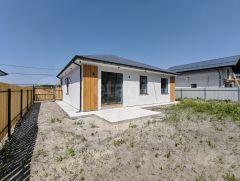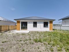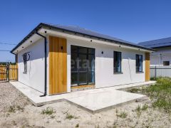 Общая площадь дома — 120 м². Планировка удобна для семьи: просторная кухня-гостиная, три спальни, два санузла, гардеробная и котельная.