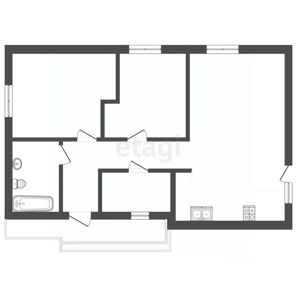 В ванной комнате установлены все необходимые сантехнические приборы: душевое ограждение или ванна, тумба с раковиной, напольный унитаз, а также трубы для стиральной машины.