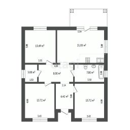 Общая площадь дома 101 кв. м (86 - полезная площадь, 15 - терраса). Три полноценных изолированных комнаты по 13,5 кв., два сан. узла, просторная кухня-гостиная 21 кв. с выходом на крытую террасу. Все коммуникации заведены в дом. Отопление электрическое, с возможностью подключения газа, который проходит по улице. В доме смонтирована система "теплый пол" и алюминиевые радиаторы, обеспечивающие комфортный микроклимат. Для горячего водоснабжения установлен бойлер на 80 литров. Отопление уже запущено и дом отапливается. Скважина глубиной 44 метра. Для септика используется закрытая металлическая ёмкость на 10 "кубов".