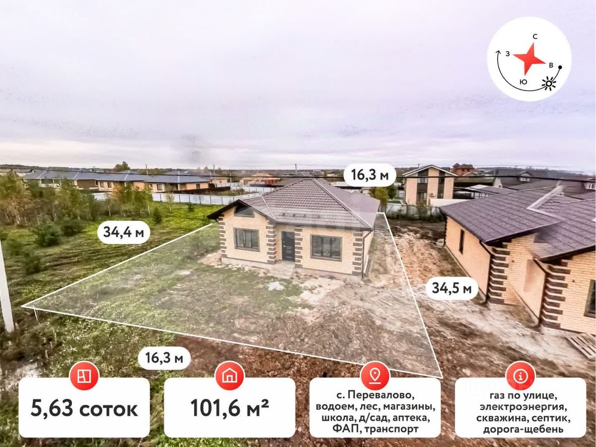 В продаже дом формата 3+ в селе Перевалово который предлагает современный формат загородной жизни с продуманной планировкой и высоким качеством строительства. Дом построен на утепленной шведской плите толщиной 400 мм, стены из керамзитоблока 250 мм, дополнены слоем минеральной ваты 100 мм и облицовочным кирпичом 120 мм, что обеспечивает высокую энергоэффективность. Крыша - металлочерепица с установленными снегозадержателями и смонтированной системой водостока.