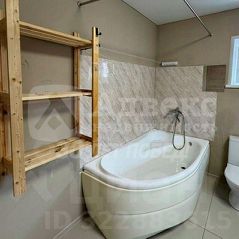 Внутри жидкие обои, натяжные потолки, пластиковые окна в пол
