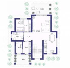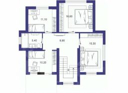 Планировка дома предполагает пять спален, два санузла, большую кухню-гостиную, крытую террасу.