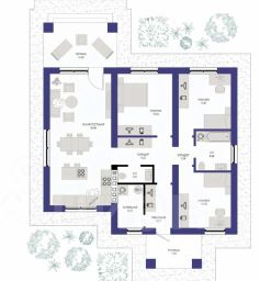 Потолки в доме более 3 метров высотой, вкупе с большими панорамными окнами это даёт ощущение дополнительного пространства.