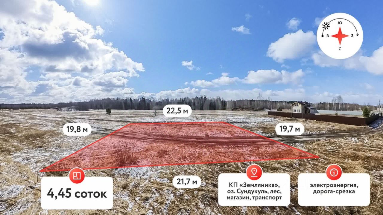 Коттеджный поселок "Земляника" — это не просто жилой массив, а портал в мир природы и уюта. Рыбалка на озере Сундукуль, грибы и ягоды в лесу под боком — все это станет частью вашей новой жизни. Магазины у общественного въезда добавят удобства вашему повседневному быту, а планируемый искусственный водоем — это перспектива для летнего купания и отдыха.