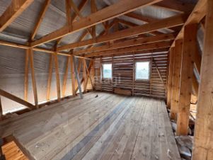 На территории стоит двухэтажный деревянный дом на сваях. Центральное водоснабжение проходит по улице, и у вас есть возможность подключить его в доме. Участок частично огорожен.