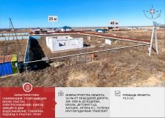 На участке есть скважина 47 метров в скважине стоит насос, проведен свет прям в дом, разводка воды в дом, огород, баню. Участок огорожен полностью столбами для забора, на меньшую часть прикручен проф.лист. Стоит уличный туалет. Фундамент под баню залит, вырыта канализационная яма под 3 м кольца (это для бани), для дома проведена конашка там стоит четыре двухметровых кольца. Дом недострой.