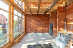 Витражные окна с трехкамерным стеклопакетом (фирма KMMERLING) дают много света и обеспечивают отличную шумоизоляцию. Высота стен первого этажа - 2,73 м. Второй этаж - свободной планировки, высота стен переменная, более 2 м.