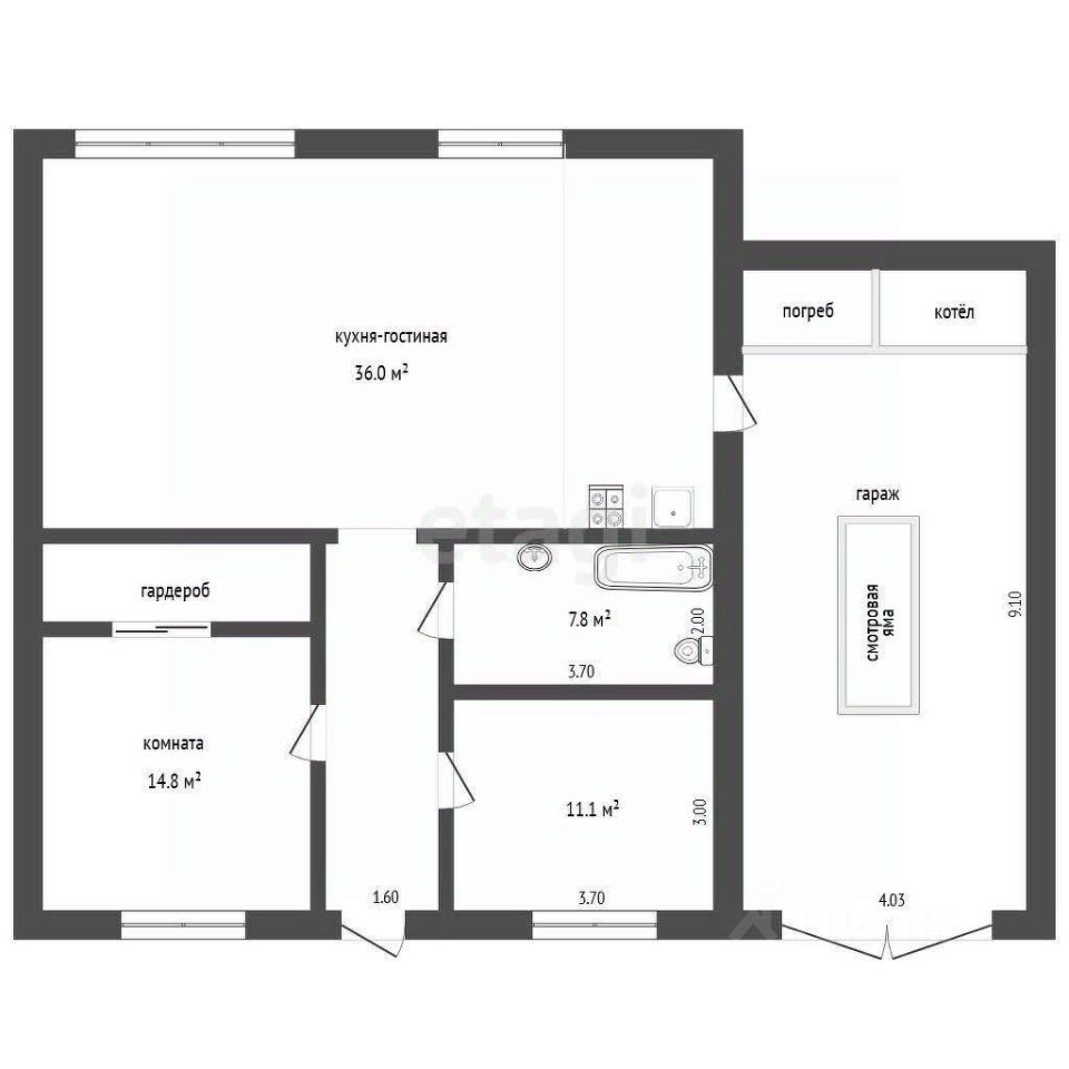 • Гараж — бонус после ремонта: Просторный гараж 39 кв. м, идеальный для машины, инструментов или как дополнительное помещение.