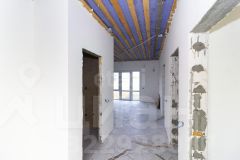 Отделка: на полу по всему дому выложен керамогранит, 2 санузла в кафеле, стены оштукатурены и готовы под поклейку обоев, разведено электричество, сделаны откосы у окон