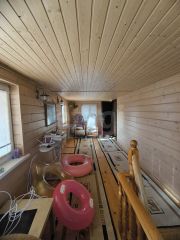 Этот дом — идеальное место для комфортной жизни и отдыха на природе. Дом подходит для круглогодичного проживания, отапливается камином, так же имеются конвекторы нап втором этаже. Есть теплая банька с парилкой., помывочной и с комнатой отдыха на втором этаже бани, три теплицы с огурцами, перцами и помидорами. Два помещения для хранения инвентаря, уютные беседки, ожна кованная, другая из дерева, лавочки, качели, все выполненно из массива дерева, красивый колодец, множество локаций для отдыха. Имеется удобный заезд для автомобилей.