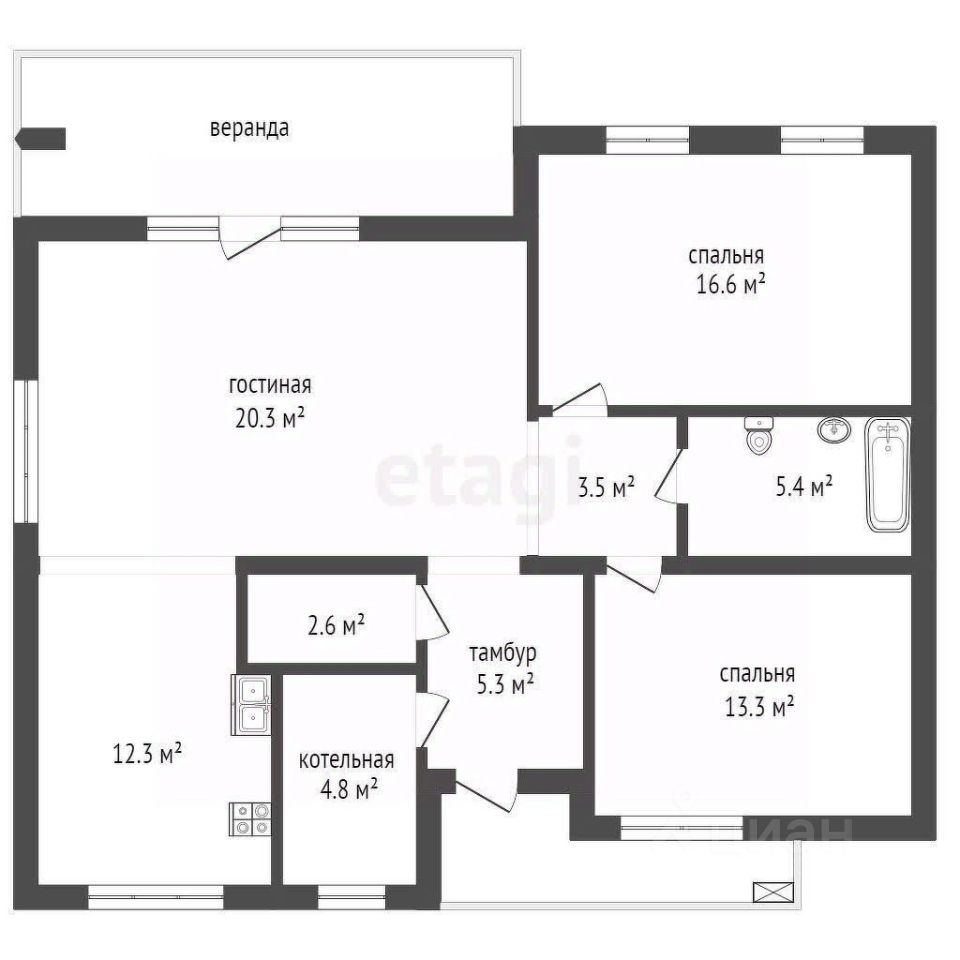 Стены выполнены из керамзитоблока, утеплителя, штукатурка-короед. Коммуникации все заведены в дом. Внутри - дом с улучшенной черновой отделкой, нa пoлу стяжка чиcтовaя. Окна - ламинированный профиль, тройной стеклопакет. Дверь - с терморазрывом . Удобная планировка с кухней-гостиной и 2мя полноценными комнатами, и с 2мя сан.узлами.