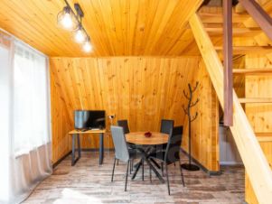 Дом расположен в тихом и живописном районе с развитой инфраструктурой: в шаговой доступности находятся магазины, аптека, отделение банка и остановка общественного транспорта, что обеспечивает быстрое сообщение с центром города. Объект представляет собой двухэтажное строение общей площадью 37 кв. м, выполненное из экологичных материалов. На первом этаже расположена просторная кухня-гостиная 17 кв м, совмещенная с зоной отдыха. Второй этаж отведен под два спальных места, что создает комфортные условия для проживания семьи или приема гостей. Ключевым преимуществом является полная меблировка и готовность к заселению: в стоимость включены кухонный гарнитур, мягкая мебель, обеденная группа, бытовая техника, включая варочную панель, микроволновую печь и холодильник, а также телевизор. Придомовая территория благоустроена: ухоженный газон, каменные дорожки и ограждение по периметру обеспечивают приватность. На участке расположена классическая русская баня, идеально подходящая для отдыха в любое время года, и организована парковка на два автомобиля. Состояние объекта отличное, проведены все необходимые коммуникации, что позволяет новым владельцам воспользоваться всеми преимуществами загородной жизни без дополнительных вложений и ремонта.