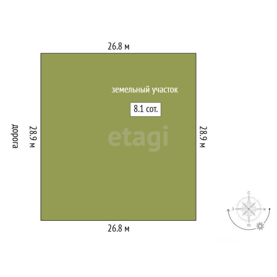 Квадратный часток 27м*27м на тихой улице.