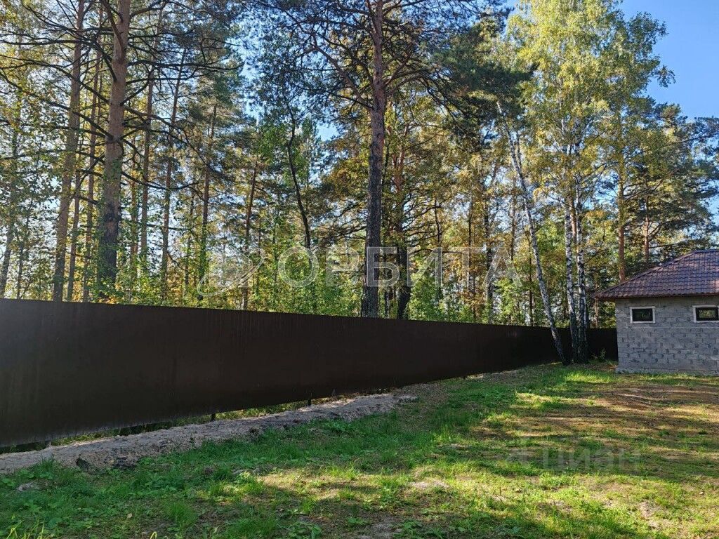 - Участок ровный, огорожен забором. На участке растут сосны.
