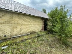 -Здание,2х этажное,180м2: Здание оформлено как гараж. Очень тёплое,стены почти метровой толщины.Обшиты кирпичом. Внутри перегородка,разделен на 2 части. Эл-во заведено,щиток внутри. Планировался как банно-гаражный комплекс -домик для гостей. с одной стороны здания-ворота. 2й этаж-чердачный,высокая крыша, планировалось сделать комнату.