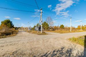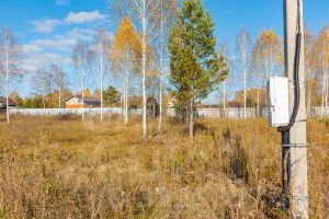 Улица освещена, на границе участков газ и электричество. На земельных участках березовый лес.