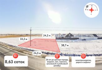 Площадь участка составляет 8.63 сотки — идеальное пространство для строительства уютного загородного домика, который станет вашим личным уголком для отдыха или выгодным объектом для сдачи в аренду.