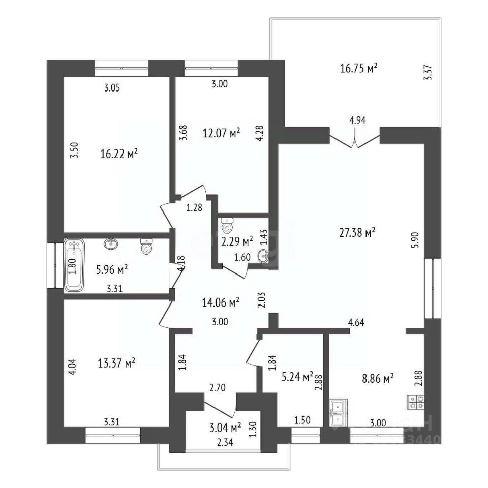 • Три просторные спальни.
