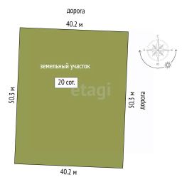 Площадь участка 20 соток, но данный участок размежеван на два по 10 соток. Возможна продажа как всего участка 20 соток, так и по отдельности по 10 соток.