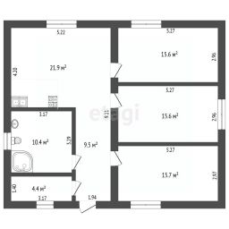 Планировка включает три комнаты, гостиную, совмещенную с кухней, просторный коридор, большой совмещенный санузел и отдельную котельную.