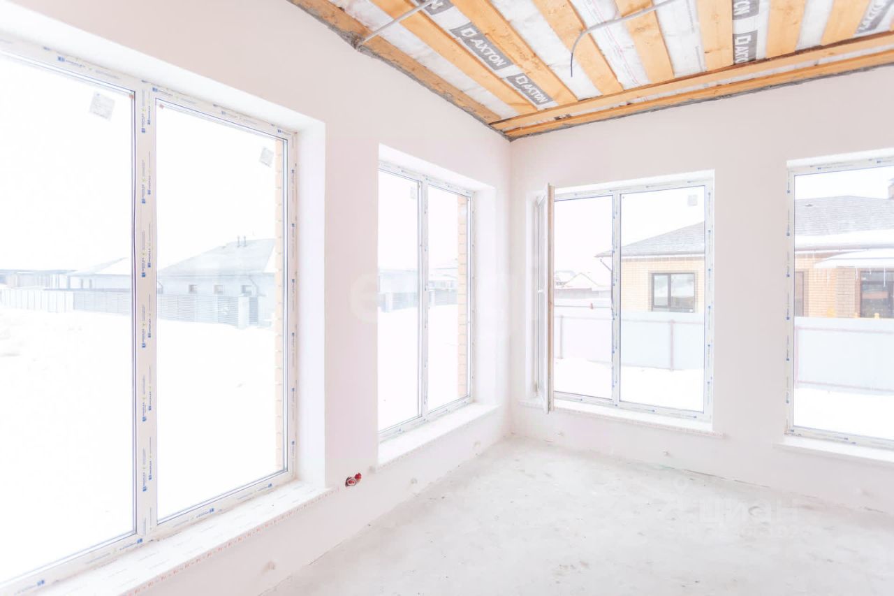 Продается качественный дом с очень интересной планировкой, общей полезной площадью 117 м2. Дом готовый, в улучшенной черновой отделке: стены выровнены под маяк, а значит можете сразу клеить обои, пол - цементно-песчаная стяжка, на которую также сразу можно класть покрытие для пола. Из просторной кухни-гостиной выход в "зимний сад" или место для отдыха и чаепития с дальнейшим выходом во двор. Панорамное остекление дает больше место и много света. Из прихожей проход к трем спальням, и гардеробной, для хранения вещей. Дом построен из керамзит блока, утеплен и облицован кирпичом, сделана отмостка. Дом угловой, что позволяет сделать заезд с удобной точки. В "зимнем саду" отведено место под котельную, в дом заведен газ, сделана разводка отопления пола, и дополнительно для любителей радиаторов сделаны радиаторы в доме.