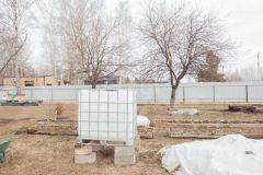 На участке есть баня, полностью готовая для парения. Также есть колодец, скважина, забор стоит с двух сторон - профнастил.