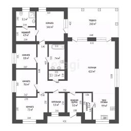• Уютная гостиная (42 кв.м) с двумя панорамными окнами и выходом на террасу идеальное место для семейных посиделок.