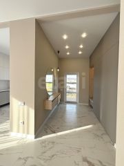 Тех. характеристики: отопление - теплый водяной пол + радиаторы, установлен электрокотел на 12 Квт, вода-скважина от 40-45 метров, септик переливной по три метровых бетонных кольца (по 6 кубов), фундамент свайно-ростверковый, стены керамзитоблок 200мм, утепление стен пеноформ 100мм, утепление крыши минеральная вата 200мм, перекрытие деревянное, крыша-профнастил, панорамные, окна из 70мм пяти камерной профильной системы REHAU.