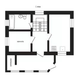 В доме три спальни (14, 16 и 17 кв. м) кухня-гостиная (31 кв. м).