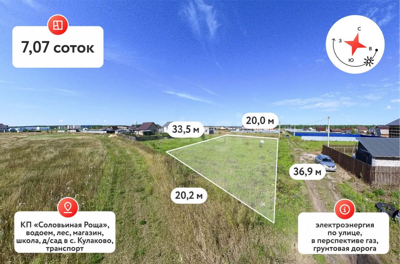 Это коттеджный поселок Соловьиная роща. расположен рядом с селом Кулаково по Ирбитскому тракту, от областного центра его отделяют 12 км. Место пользуется большой популярностью у горожан и в данный момент здесь идет активное строительство коттеджей. В ближайшее время будет полностью обеспечен газом.Электричество подведено к участку.