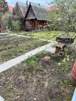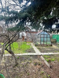 Участок ухоженный, местами газон, растут многолетние цветы, туи, плодоносные деревья.