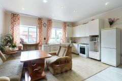 Гараж из пеноблоков (8*4 м) на две машины, с погребом (вход в гараж с веранды), в доме газовое и электро-отопление ( в доме электричество 3 фазы), горячая, холодная вода, теплый пол на кухне- гостиной, в сан узле, коридоре и котельной.