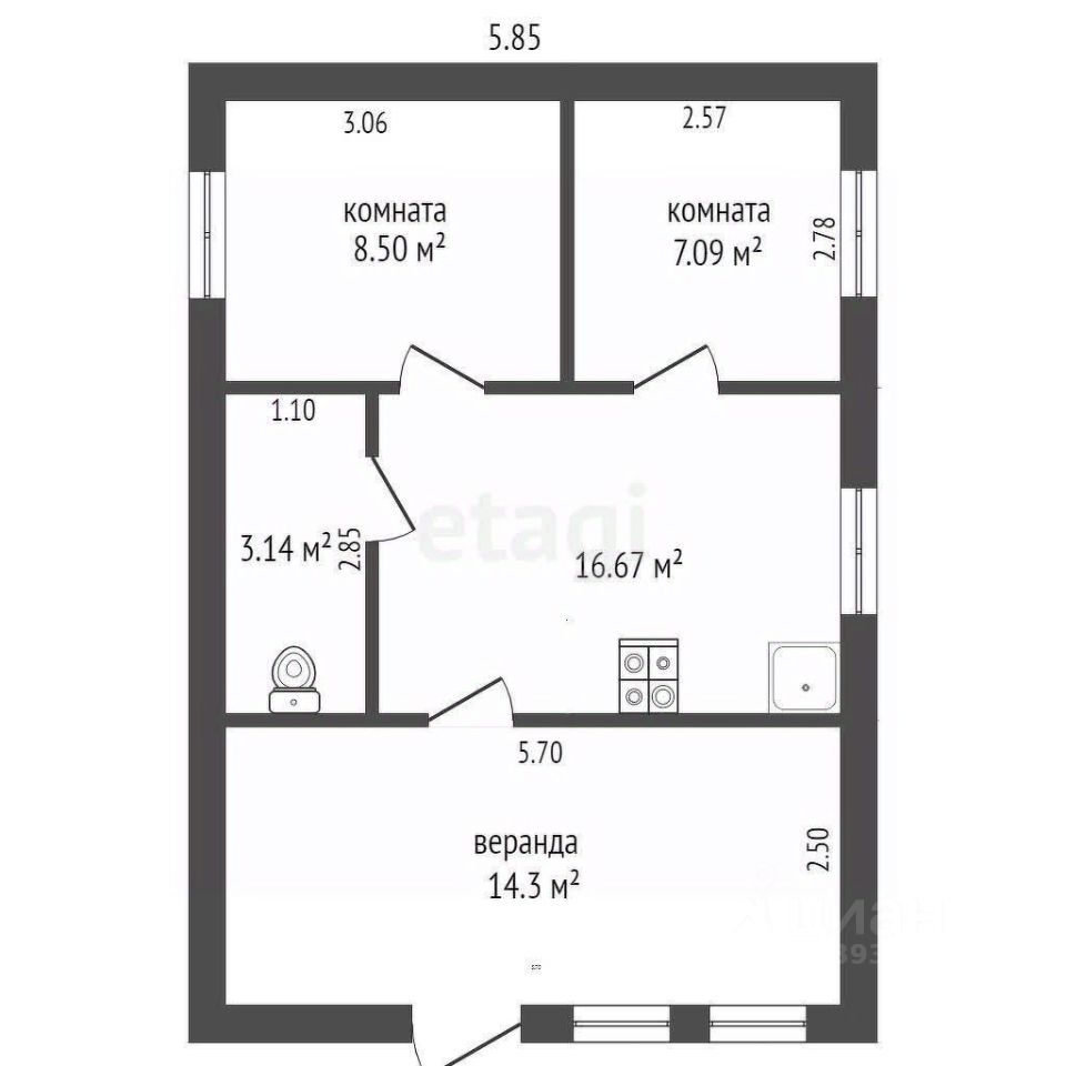 О ДОМЕ: Одноэтажный каменный теплый дом с утепленной верандой площадью 46 метров квадратных. По документам - двухкомнатная квартира 32,2 кв.м. Можно приобрести в ипотеку.