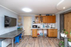 Дом для круглогодичного проживания сочетает капитальную кирпичную конструкцию с экологичностью деревянной кухни-гостиной. Планировка функциональна: просторная кухня-гостиная служит центром семейной жизни, а изолированную спальню при необходимости можно легко разделить на две полноценные комнаты, что обеспечивает гибкость использования пространства. Для комфортного проживания в любое время года в доме организовано электрическое отопление, при этом подано заявление на подключение к магистральному газу, что открывает перспективу для более экономичного отопления. Коммуникации автономны: водоснабжение из собственного колодца, канализация через септик. Участок благоустроен и практичен — здесь расположена баня, хозяйственная постройка для хранения инвентаря и теплица для выращивания овощей и зелени. Садовая территория с плодовыми деревьями и ягодными кустарниками обеспечивает приватность и урожай. Ключевым преимуществом является развитая инфраструктура посёлка с постоянным проживанием соседей, магазином в шаговой доступности и удобной транспортной развязкой: остановка находится рядом, а для семей с детьми организован подвоз школьным автобусом. Этот объект предлагает сбалансированное сочетание уединённой загородной жизни с полным набором бытовых удобств.