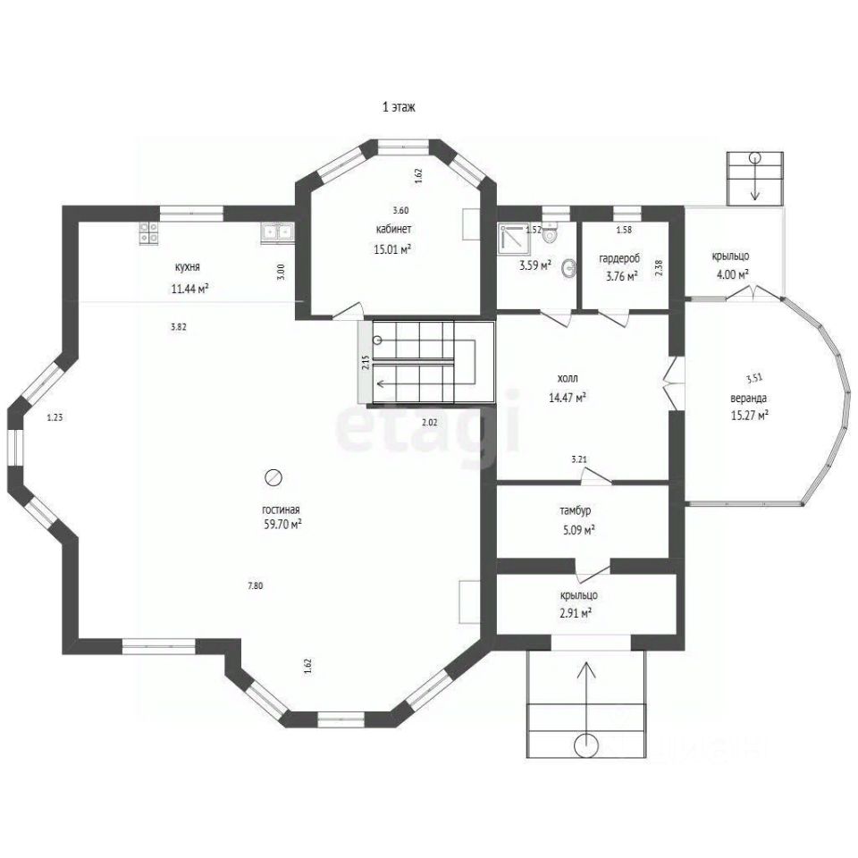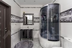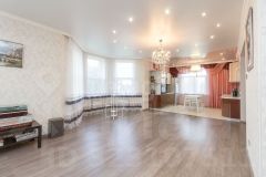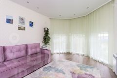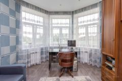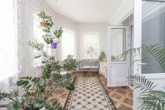 Общая площадь дома 315 квм. На первом этаже гараж, прихожая, зимний сад, кладовая для хранения овощей, котельная-прачечная, комната отдыха с дровяным камином, на втором этаже располагается просторная гостиная-кухня, кабинет, спальня и санузел, на третьем этаже расположены четыре спальни, одна из которых с балконом, откуда открываются живописные виды.