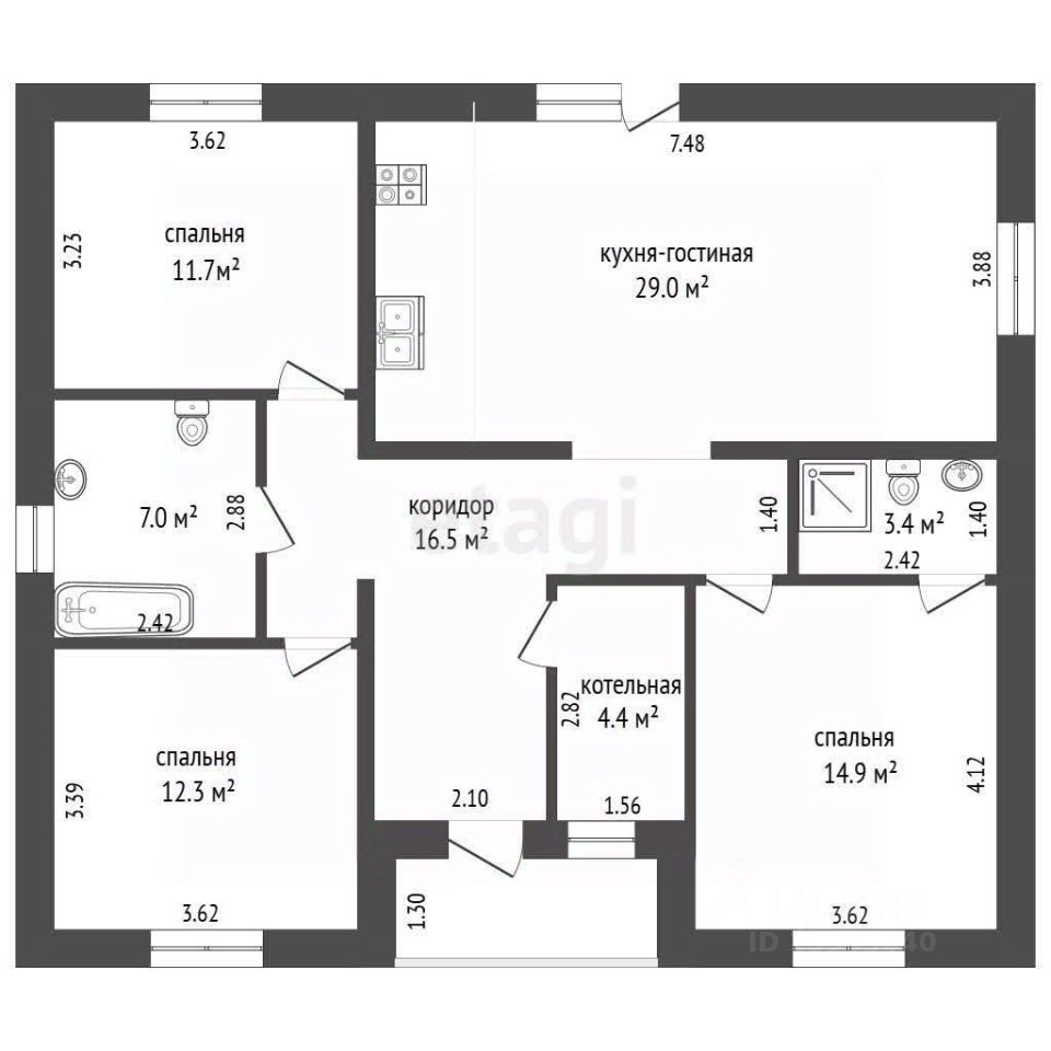 Дом площадью 103 кв.м расположен в живописном районе Серебряный бор, вблизи Старого тобольского тракта напротив села Мальково. Участок 9 соток граничит с лесом, обеспечивая приватность и ощущение единения с природой. Прочный ленточный фундамент с монолитной плитой гарантирует долговечность конструкции, а стены из газобетонных блоков с облицовкой брылинским кирпичом сочетают энергоэффективность и эстетику. Четырехскатная крыша из металлочерепицы надежно защищает от осадков и придает дому завершенный вид.