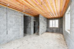 Фундамент -плита из бетона М250, два уровня арматуры диаметром 12. Стены керамзитоблок 300. Утеплитель мин вата 50. Облицовка кирпич цвет шоколад Брылино. Сделан армопояс. Четырехскатная крыша из мягкой черепицы Тегола(TEGOLA). Разводка электричества проведена, газ. Окна тройной стеклопакет. Есть отдельный выход на террасу из дома. Скважина облагороженная(сделан киссон). Септик переливной. Выведены все коммуникации под баню.