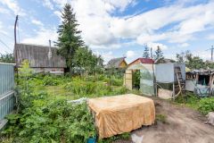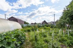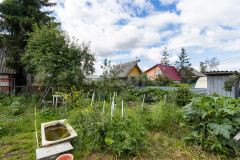 На участке в 5 соток размещен кирпичный домик 20 кв.м с косметическим ремонтом. Дом добротный, крепкий, трещин нет. Участок высокий, правильной прямоугольной формы, дополнительно отсыпан, не топит. Есть баня, теплица и колодец. На участке множество насаждений, растут плодовые деревья и кустарники, выполнены посадки.