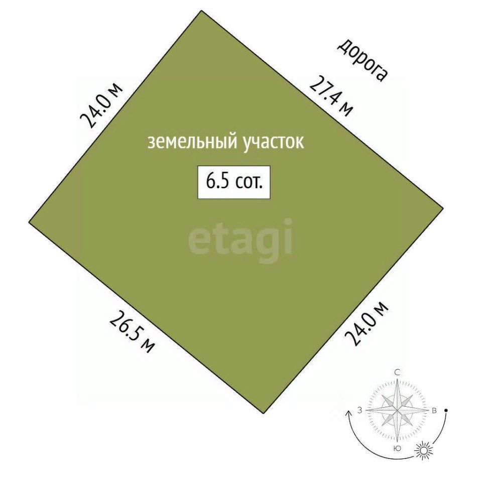 Участок площадью 6,5 соток имеет ровную и правильную форму, что делает его идеальным для строительства вашего будущего дома. По фасаду 27 метров, в глубину 25 м. Угловое расположение участка предоставляет вам множество преимуществ: вы сможете организовать два удобных въезда, а соседи будут только с двух сторон, что обеспечит вам дополнительную приватность. Высадив вдоль забора сосны, вы создадите красивую живую изгородь, которая станет отличным украшением вашего участка.
