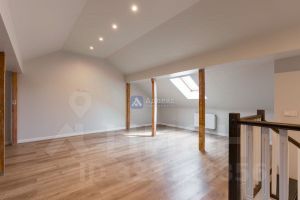 На третьем этаже 30 кв.м., сделан ремонт. Можно зонировать комнату по своему желанию. Одно мансардное и одно небольшое окно.