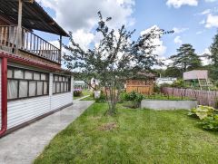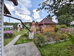 Участок украшают плодовые деревья и кустарники: ирга, смородина, малина, рябина, а также множество цветов и декоративных растений. При входе высажены взрослые туи, создающие приятную тень и уют.