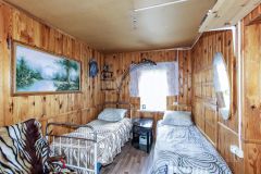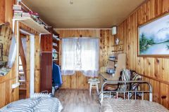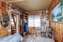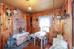 Внутренняя отделка выполнена в классическом дачном стиле: стены обшиты вагонкой, полы покрыты новыми покрашенными досками. Для отопления используется каменная печь, которая эффективно прогревает помещения даже в холодное время года.