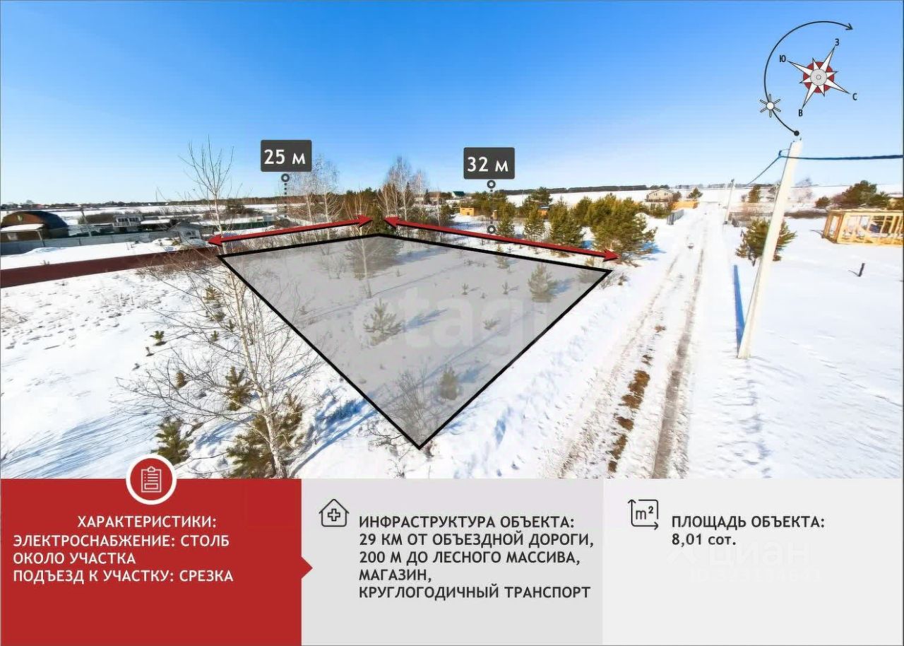 Возле участка установлена опора линии электросетевого комплекса с возможностью подключения к электросетям.