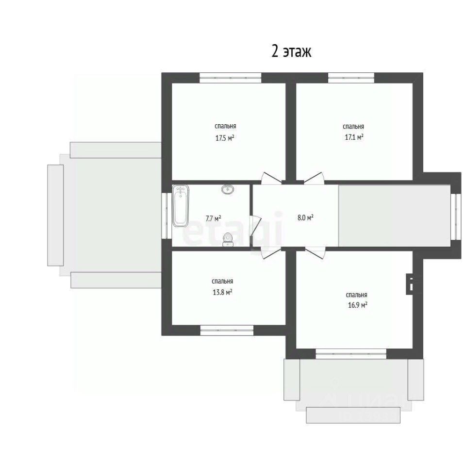 - четыре спальни по 17 кв.м и одна небольшая- 13 кв.м